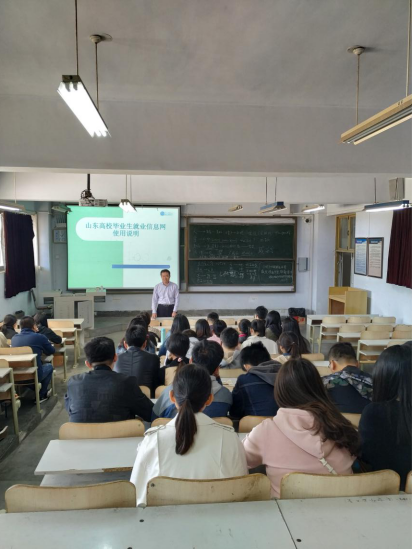 随后,胡现龙老师结合山东省高校毕业生就业信息网,从就业信息网的注册及登陆、简历制作、网上求职、网上签约、业务申请等流程,为到场学生做了详细讲解。