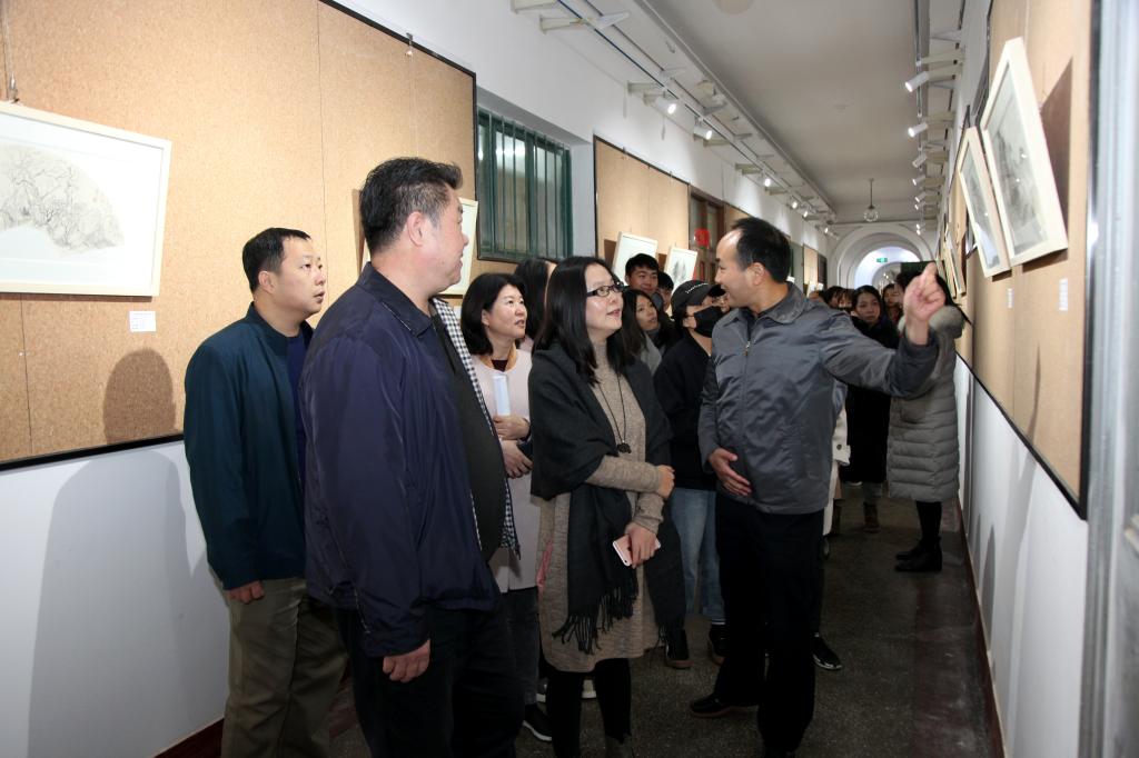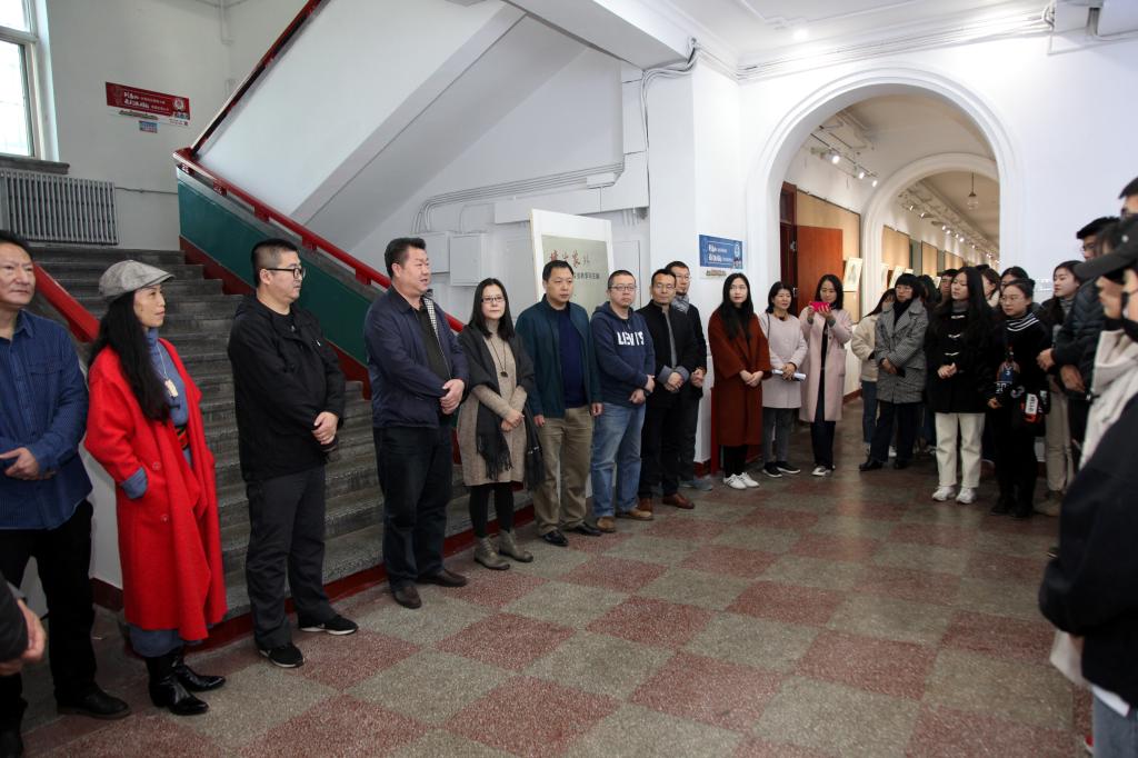 艺术与设计学院党总支书记、院长孙波在开幕式上致辞。学院领导班子、绘画专业教师及学生参观了位于2号教学楼一楼的作品展。