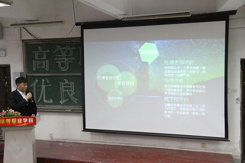此次评选大会由各班自愿申报,学院评审小组根据各班递交的材料,按照《高等职业学院优良学风班创建评选办法》对申请班级的不及格率、学绩数占比等各项指标进行了计算排名,从二三年级32个班中初选出10个班级参加此次公开答辩。