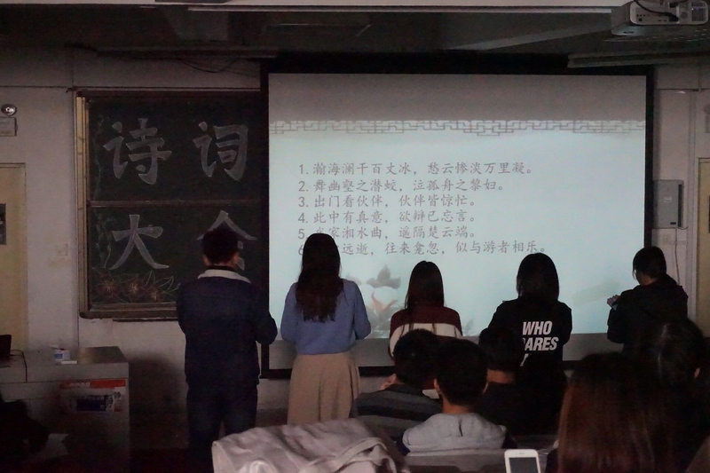 为传承中华诗词文化,弘扬传统经典,11月24日下午,商学院青衿学社在长江路校区二教阶201举办了学生诗词大赛。