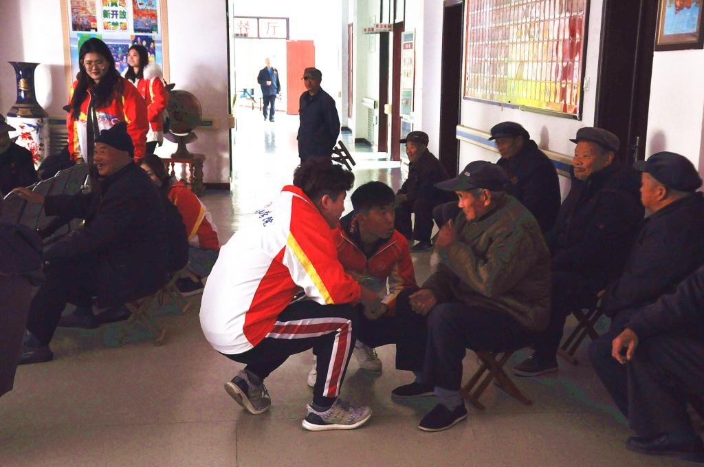 同时,同学们还准备了精彩的文艺节目:婉转悠扬的歌曲,刚劲有力的武术,惟妙惟肖的相声,气势磅礴的合唱……欢声笑语与掌声回荡在屋里,洋溢在老人们脸上的笑是对同学们表演的最好回应。最后,同学们分别给老人们送上了美好的祝愿,并与老人们一起合影留念。