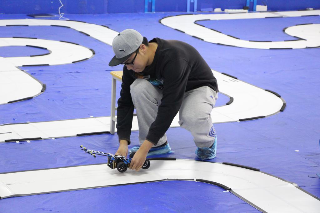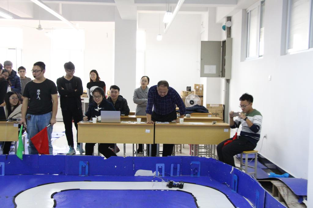 第一届“宇智波杯”青岛市高校智能车竞赛由青岛市科学技术协会、青岛市高校智能车竞赛联盟主办,指定使用青岛宇智波电子科技有限公司生产的U-STM-F101型智能车,采用通用的STM32技术平台以及电磁组别的道路识别方法。比赛旨在促进青岛市高校大学生的创新与动手实践能力,培养团队精神,促进学生共同进步。为做好本次比赛的选拔工作,信控学院组织了本次校内赛。比赛从上午八点正式开始,上交车模、试车、正跑与反跑等比赛流程均安排紧凑,进行顺利;计时、引导、裁判、评委任务分工明确,比赛成绩信息完全公开,体现了信控学子认真严谨的科学精神。36支参赛队伍经过了两周的学习与调试,对智能车的硬件组成与软件算法等有了初步的学习,并在一次次的算法尝试与程序调试过程中,取得了极大的进步,均展现出较高的技术水平,取得了优异的成绩。