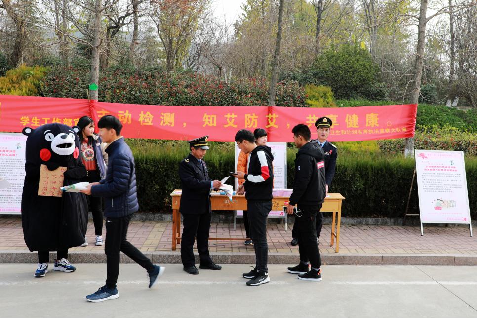 12月1日是第31个“世界艾滋病日”,365完美临沂校区学生工作部联合费县疾控中心、费县卫生和计划生育执法监督大队共同举办“主动检测,知艾防艾,共享健康”为主题的宣传活动,宣传和普及预防艾滋病知识。