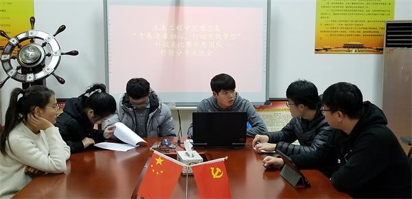 本次活动主要由团总支成员中多次参与“互联网+”、“挑战杯”等科技类竞赛的同学为大家分享参赛经验。来自于“新型装配式可恢复钢结构”团队的袁丁从如何选择专业指导老师、选定项目主体、撰写作品流程等方面为其他团支书们介绍参赛经验。来自于“多功能埋地式太阳能红绿灯”团队的成员孔鹤淇从如何完善作品,进入答辩环节后如何充分展现自己作品等方面与同学们分享心得体会,并告诉大家一定要持之以恒,与团队成员协调合作。团支书们还交流了如何在班内宣传组织各类科技创新类竞赛,充分激发同学们参加科技创新活动的热情。