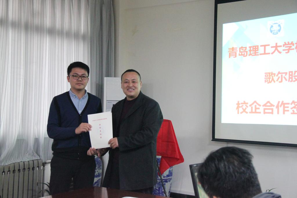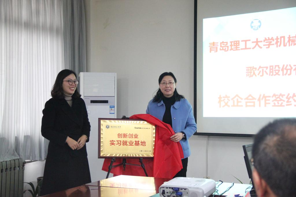 12月6日上午,机械与汽车工程学院与歌尔股份有限公司在嘉陵江路校区主教学楼A414举行校企共建签约暨揭牌仪式。歌尔股份人力资源本部高校合作部部长徐燕、歌尔股份事业群声学研发部部长伯龙、歌尔股份人力资源本部高校合作部经理张德华,机械与汽车工程学院党总支书记岳丽宏、泰山学者林天然和刘碧龙、学院副书记林海涛、副院长杨勇、王优强及各教研室主任、就业辅导员、部分硕士研究生参加了本次会议,会议由林海涛主持。