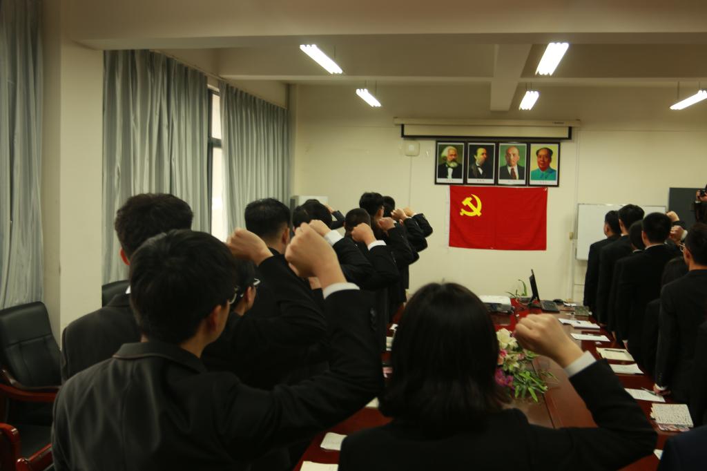 宣誓仪式在激昂的《国际歌》声中拉开序幕。宣誓仪式上,林海涛代表学院党总支向参加宣誓仪式的新发展学生党员表示祝贺,并希望大家要永远保持党员的先进性,无论何时何地,都要坚定信念、牢记使命,以党员的标准严格要求自己,发挥党员的模范带头作用。随后,党总支青年委员隋学智宣布了参加宣誓的新学生党员名单。名单宣布后,新发展的34名预备党员面向党旗,举起右手,在丁于娟同志的逐句领读下,用慷慨激昂的语气,庄严向党旗宣誓,表达对党的忠诚、为共产主义事业奋斗终身的决心。