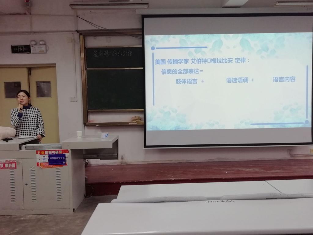 随着现代生活节奏的加快,心理健康问题越来越受到人们的关注。为了让大一新生更好的学会与他人相处,更好的融入社会,葛欣老师为同学们讲述了人们在特定情况下的微表情和肢体动作,教给同学们与他人沟通交流时的一些小技巧。随后,她还向同学们展示了人们在不同情况下的站姿和坐姿,告知大家这些非言语沟通所带来的含义。在授课期间,葛欣老师频频与同学们进行互动,课堂气氛十分活跃。