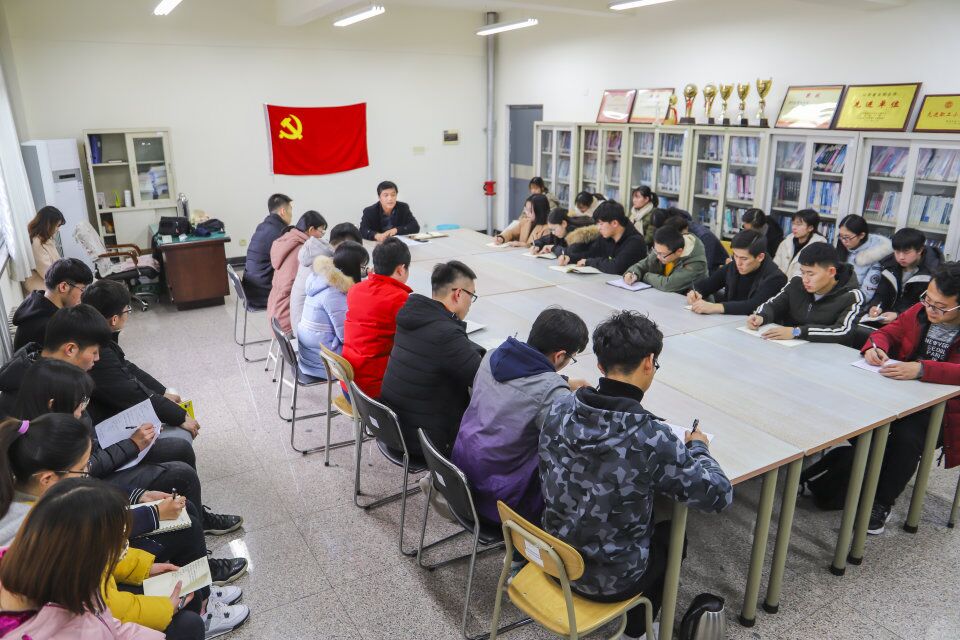 首先,董典同书记对本次接收的50名预备党员表示祝贺,对他们在学习、工作等方面取得的突出成绩表示高度肯定。祝贺他们顺利通过了党组织的考验,并期盼大家在今后的学习、工作、生活中担当起党员责任,为社会发展、祖国强大贡献自己的力量。随后,在场的预备党员结合个人实际情况对学习、生活、入党动机等方面进行了介绍,董书记带领全体预备党员深入学习了党的八项权利、八项义务,就习近平总书记在“五四”期间对青年人提出的要求以及对青年学生寄予厚望等一系列讲话展开学习。