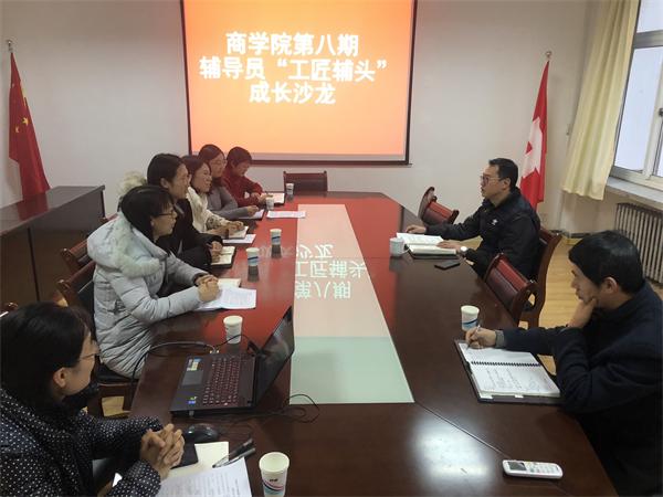 12月11日下午,商学院在1教403会议室开展第八期“工匠辅头”辅导员成长沙龙,集中学习曲建武教授《做大学生人生成长的指导者和引路人》报告会精神。党总支书记王粲、副书记董兰国,全体辅导员参加了学习讨论。
