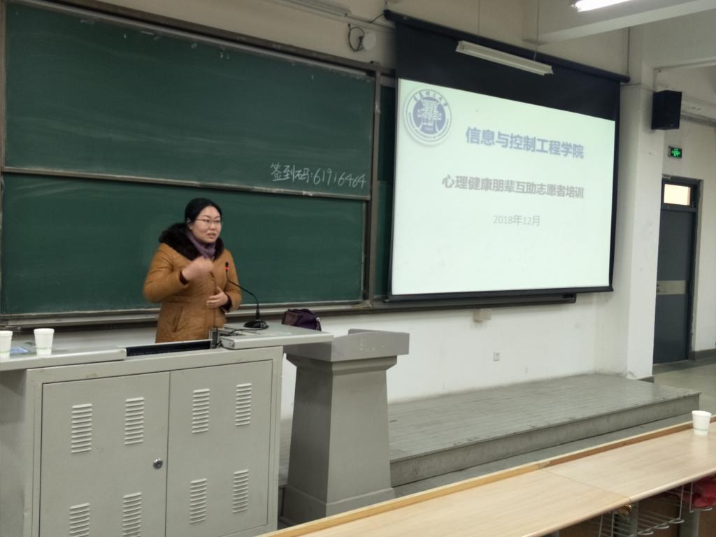 12月12日,信息与控制工程学院在嘉陵江路校区主教学楼举办了心理协会骨干和心理朋辈互助志愿者技能培训,活动由薛腾飞老师主持。