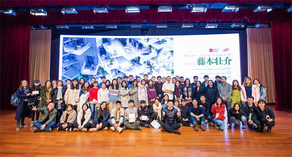 12月12日,由青岛市勘察设计协会、青岛市城乡规划学会、青岛市土木建筑工程学会主办,青岛腾远设计事务所有限公司承办,365完美建筑与城乡规划学院协办的“走进大师系列(第六期)——藤本壮介•未来建筑”学术讲座在海尔全球创新模式研究中心二楼国际会议中心隆重开讲。山东省、青岛市建筑规划管理部门、建筑设计师、高校师生、地产商代表、新闻媒体等共同见证了这场高水准的学术论坛,建筑与城乡规划学院40余位师生代表参加此次学术论坛。