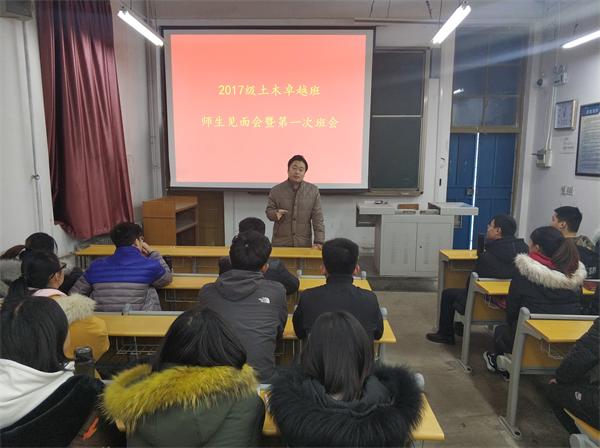 12月12日,土木工程学院在一教231教室举办2017级卓越土木工程师班师生见面会。学院党总支副书记邵先锋、辅导员肖丽丽、卓越土木151班班长张羽宸以及卓越土木171班全体同学参加本次见面会,见面会由卓越土木171班班主任杨国涛主持。