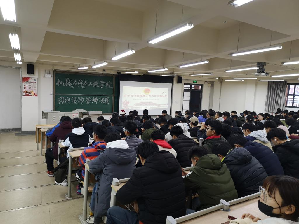 为进一步加强团的基层组织建设,增强学生团员的主动性和创造性,12月12日下午,机械与汽车工程学院团总支在嘉陵江路校区主教学楼B201举办了“眷笔青笺画韶华,青春建功新时代”主题团日活动答辩大会。团总支书记隋学智、16级辅导员陈锦子、18级辅导员徐卫晓、丁于娟、李龙及学生会主席团及团总支委员会委员担任评委。各团支部团员代表共180余人参加了答辩大会,听取各团支部团日活动的精彩汇报。