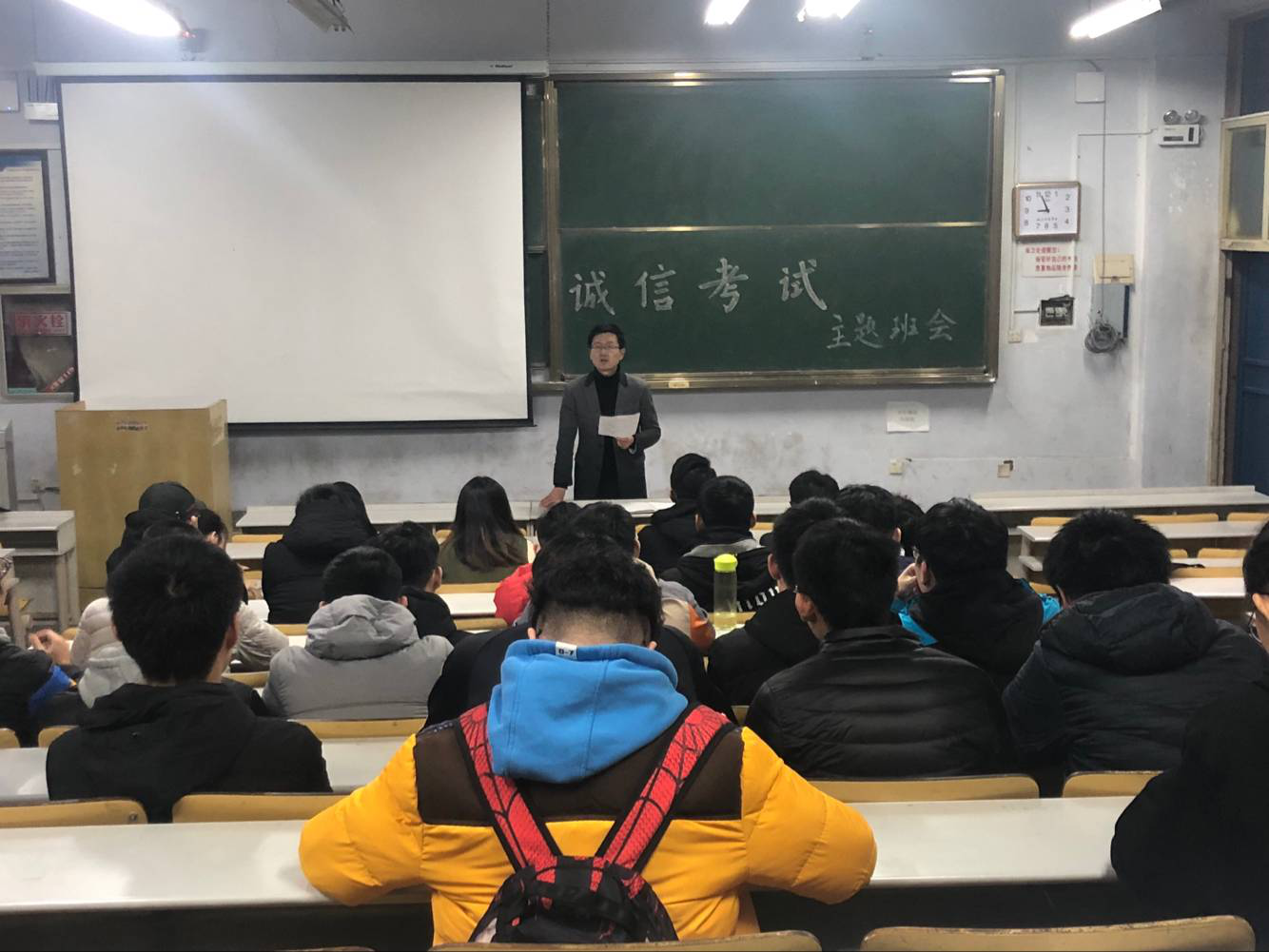 各班级组织召开考前诚信教育主题班会,逐条逐款解读学校学生管理规定、违纪处分规定、课程考核管理办法及考场纪律等相关条文,以集体荣誉感引导规约学生个体,严肃考试纪律。