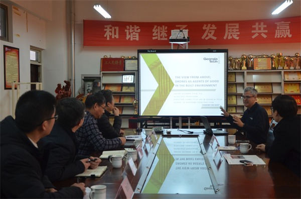 会议伊始,学院领导对Javier Irizarry教授和周建亮教授的到访表示热烈欢迎。随后,荀志远就学院现状、人才培养、学科及团队建设等情况进行了介绍,对新旧动能转换方案及新工科建设规划进行了阐述。Javier Irizarry教授介绍了美国佐治亚理工学院建设管理学院的专业情况以及开展的科学研究,分享了 BIM和无人机在城市治理及工程建设管理的应用研究成果。