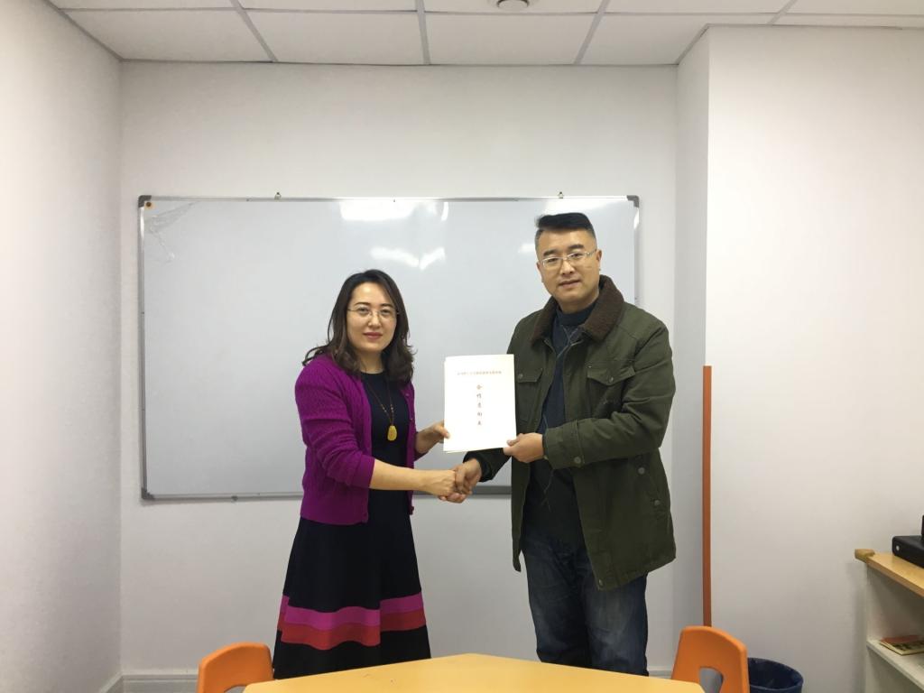 人文与外国语学院与青岛爱立教育科技有限公司在青岛市黄岛区金石国际广场举行了就业创业实践基地签约仪式,青岛爱立教育科技有限公司代表人周彦琴、学院党总支副书记王振和辅导员陈刚参加了仪式。
