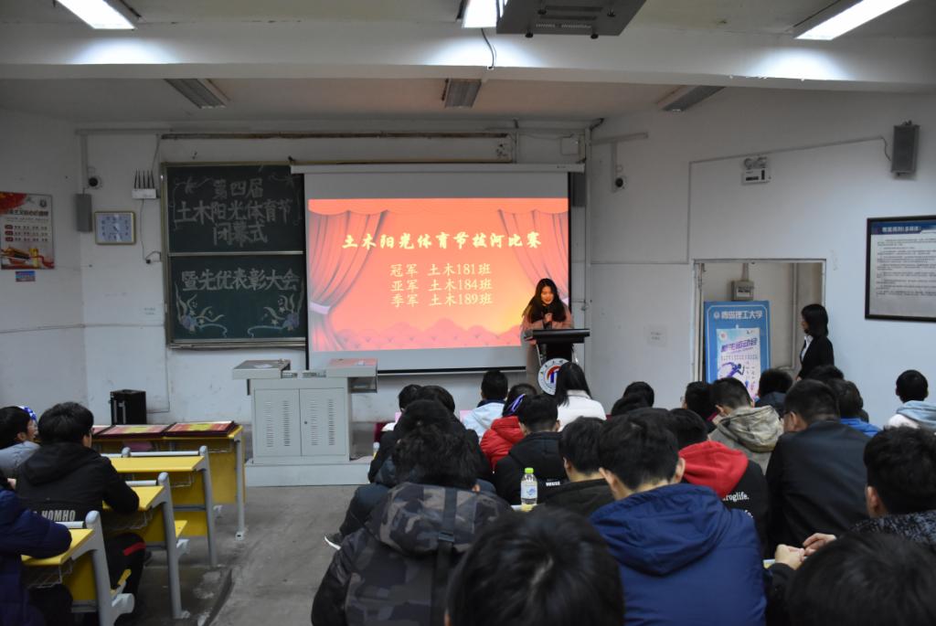 12月20日, 土木工程学院在一教五阶成功举办第四届土木阳光体育节闭幕式暨学年体育工作先优表彰大会,辅导员王中帅、刘欣然、杜诗琳及各班级体育委员出席本次活动。