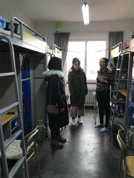 各位辅导员按照分管年级分别对1公寓、4公寓、山东路公寓进行安全卫生大检查,此次检查重点对宿舍是否违规使用大功率电器、是否按时通风、是否存在火灾安全隐患等。检查中,各位老师与同学们亲切交谈,询问近期生活学习状况,并提醒同学要经常开窗通风,加强体育锻炼,预防流感等传染病的发生;临近期末要多认真准备复习,争取取得一个好成绩。特别要加强安全意识和安全防范能力,做好假期安全出行和防火、防盗、防电信诈骗等工作;严格遵守学校、学院相关管理规定,做好安全防范工作,消除安全隐患。
