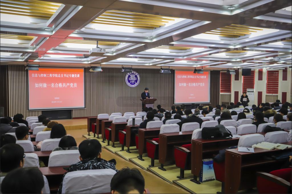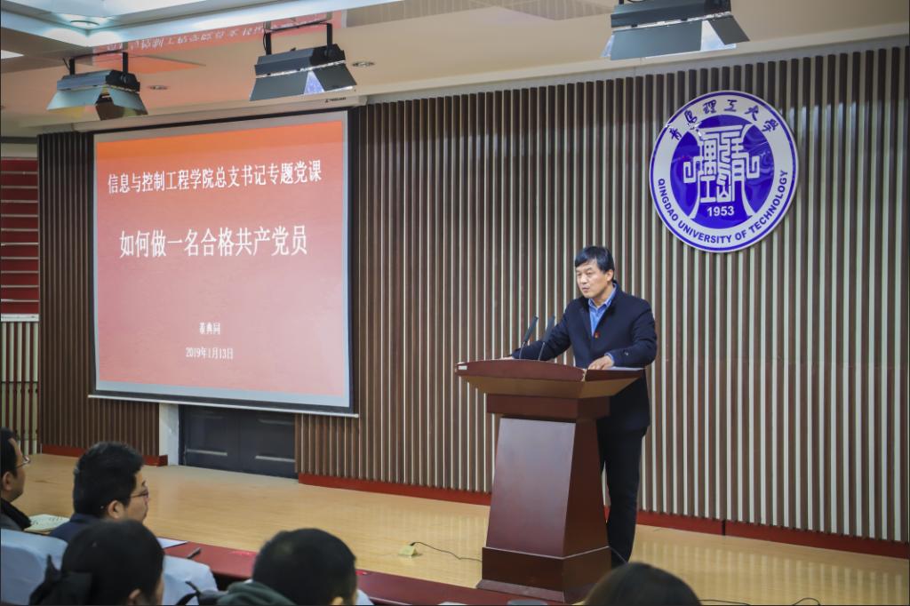 1月13日下午,信息与控制工程学院党总支在嘉陵江路校区一楼东报告厅组织了“如何做一名合格共产党员”专题党课,党总支书记董典同主讲,全院师生党员230余人参加党课。