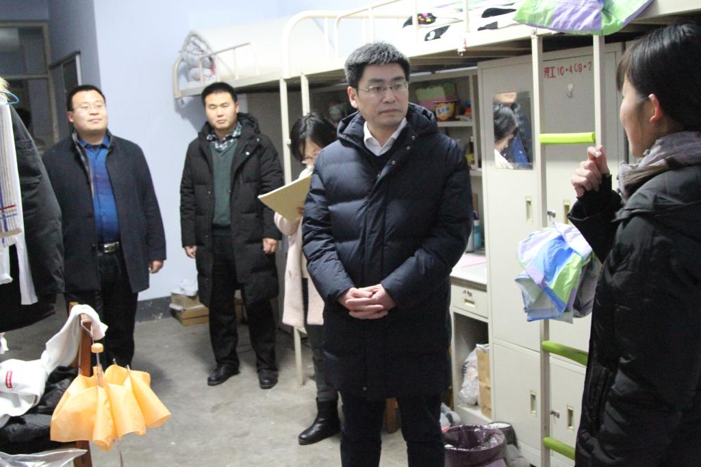在学生公寓,临沂校区领导听取了假期留校学生情况,逐一走访了返校学生宿舍,并与学生进行了亲切交谈,关心询问同学们的学习、生活、备考等各方面情况。在餐厅,详细了解了寒假期间饮食供应情况,要求总务部门确保假期餐厅饭菜质量,切实提高师生的满意度;在医务室,校区领导详细询问了值班执勤、药物准备等情况,要求切实做好疾病防控和健康卫生工作。
