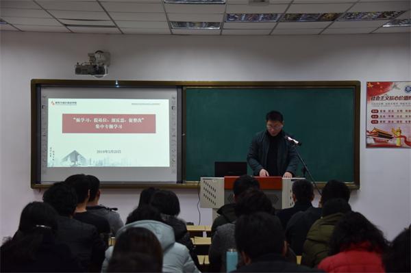 肖学斌带领大家集中学习了《新时代高校教师职业行为十项准则》《陈宝生在2019年全国教育工作会议上的讲话》《教育部办公厅关于加强高校教学实验室安全工作的通知》《全国教育大会精神》《山东省学校安全条例》等文件。院长许从宝传达了学校工作动员部署、推进落实大会会议精神,结合学校2019年工作要点,对学院2019年工作要点进行了梳理,明确提出城乡规划专业评估以及建筑学专业博士点的申报是工作的重中之重,要求全体教职员工同心协力,狠抓落实,务求实效。