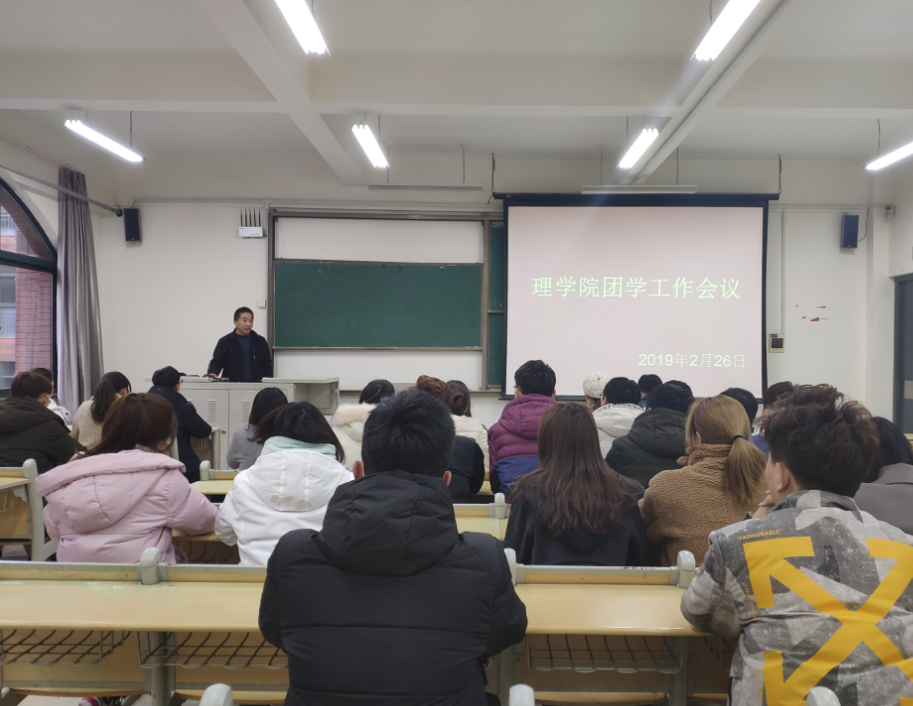 2月26日,理学院在嘉陵江路校区召开团学工作会议。党总支副书记刘聘,学工办主任、分团委书记李晓辉,学生会、社团联合会主要干部参加会议。