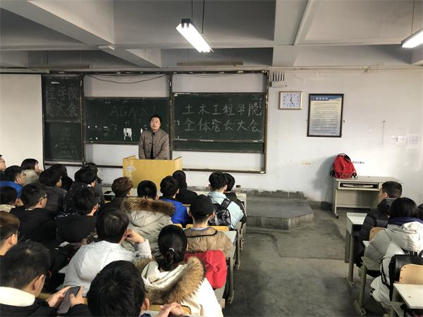 2月27日中午,土木工程学院于1教300阶召开全体宿舍长大会。土木工程学院党总支副书记邵先锋,学生工作办公室主任、分团委书记王中帅,全体辅导员以及各宿舍舍长参加会议。