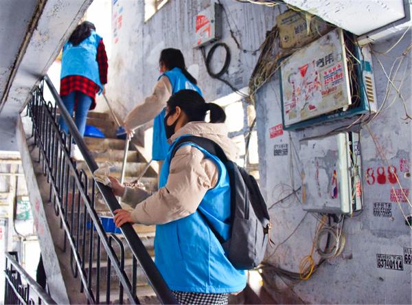 2月27日下午,学院组织同学们到南山社区开展了“社区学雷锋,服务暖人心”学雷锋清扫活动,本次活动由学院学生会实践部组织策划。当天下午,同学们在实践部负责同学带领下,拿着清扫工具徒步到了南山社区前广场集合。此次学雷锋清扫活动事先制定了明确的分工,同学们或拿起手里的工具打扫起地面来,或拿出准备好的抹布擦拭广场上的健身器材,纷纷投入到志愿劳动中去。广场打扫干净后,大家朝着南山小区内部进发。居民楼的楼梯上不算干净,同学们认为,这关乎到老人们日常生活的健康指标,便立刻着手打扫起来。不一会儿,楼道就变得焕然一新。“虽然有点累,还弄得身上有些脏,但是想到这样可以给老人们一个更加舒适的生活环境,这也是值得的。”参与活动的一个同学如是说道。