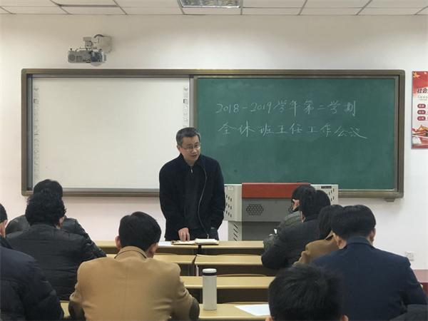许从宝首先对各班主任在2018年的辛勤付出表示感谢,肯定了各位在班主任岗位上的工作实绩。他指出,2019年学生工作仍然任务重、意义大,希望各位班主任继续保持好状态,教育和服务好学生。