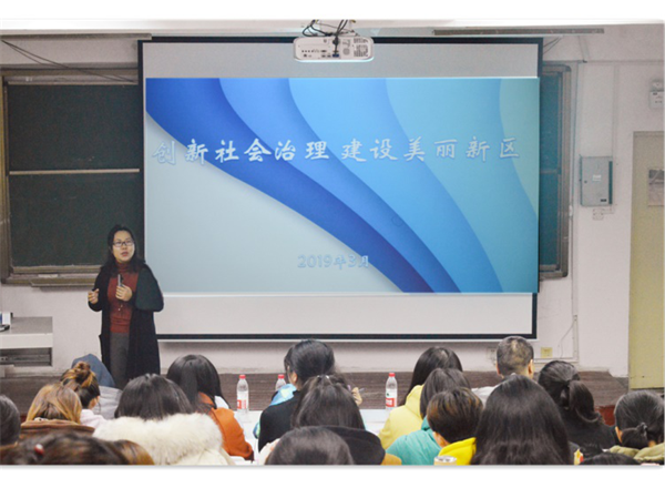 3月5日上午,为更好地了解新区,服务新区,人文与外国语学院社会工作专业举办了“创新社会治理,建设美丽新区”主题讲座,特别邀请了西海岸新区社会治理中心社会协同科科长韩杨介绍新区社会治理的创新实践。学院副院长王晓东,部分专业教师及社工专业大一至大三年级的学生到场聆听了本次讲座。