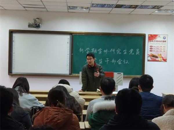 在日常管理方面,高江强调要做好文明礼仪教育以及传染病防控工作,从简单的晨检、宿舍卫生清扫、垃圾下楼、开窗通风、被褥晾晒等工作做起,对学院老师、同学们的健康负责。此外,高江提出了对研究生干部、研究生党员的两点要求:研究生干部及党员要有担当精神,讲纪律,务必将学生工作落到实处,积极团结同学;研究生党员要坚持学习制度,用好学习平台,强化理论武装和思想教育。