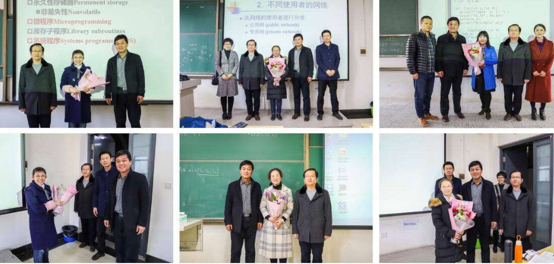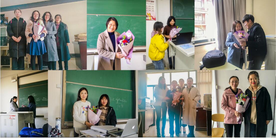 一束束鲜花,一条条祝福短信表达了学院师生对全院女教工的深切关爱和祝福。课间,学院党总支书记董典同、副院长宋传旺、学院分会委员、辅导员等来到嘉陵江路校区和长江路校区,走进教室,为校三八红旗手、2017年中国民主同盟会青岛市盟委“盟务先进工作个人”王素珍,理工最美家庭获得者何香玲,校三八红旗手、军嫂武曲及指导学生获得山东省网络科技大赛一等奖的柳红四位女教师代表送上鲜花表达了节日的问候与祝福。学院学生会也代表全院学生课前为其他上课的女教师送上鲜花表达了对老师的尊敬和祝福。董典同书记代表学院询问了老师们的工作与生活情况,肯定了她们在日常教学、科研等工作中所取得的成绩,赞扬了她们甘为人梯、兢兢业业、默默奉献的高尚职业道德和敬业精神,对她们为学院发展作出的贡献表示感谢并给予了高度评价。同时也向上课的同学们提出要求,希望他们尊敬老师,发奋努力,敢于担当,履行社会责任,用实际行动为学校发展做贡献。