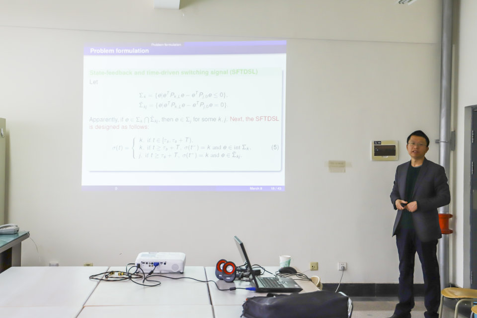 宗广灯教授首先介绍了自己任职的曲阜师范大学工程学院的概况及带领团队的研究方向,结合个人方向开展了开关系统模型参考自适应跟踪控制的学术报告,就如何提高系统的抗干扰性能等问题展开详细讲解,并与年轻教师交流了基金申请工作。此次讲座极大提高了学生们的积极性,促进了学生们对知识的深层理解,具有十分重要的学术和实际应用意义。(撰稿:陈昕;审核:赵景波)