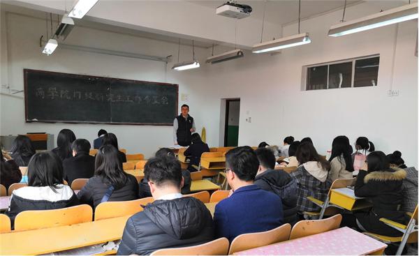 为进一步加强研究生的教育管理工作,帮助研究生明确学习任务和要求,3月14日下午,商学院在一号教学楼418教室召开2017级研究生学习教育会,商学院副院长乐国林、副书记董兰国、辅导员冯宁以及2017级全体研究生参加。