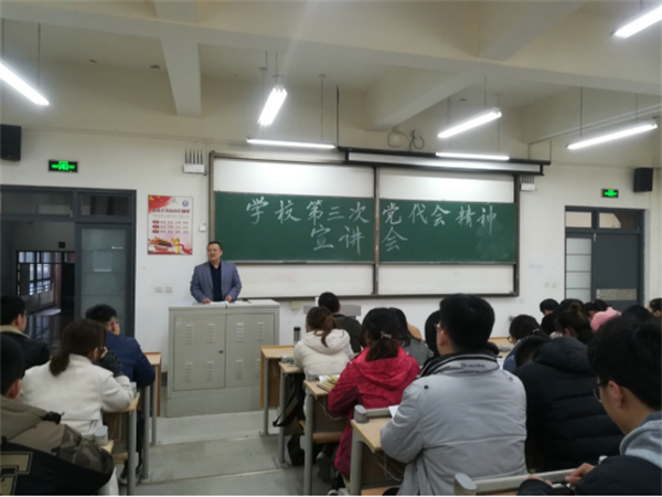 近日,机械与汽车工程学院在嘉陵江路校区主教学楼B101组织学生党员学习学校第三次党代会精神。党总支副书记林海涛、全院辅导员、在校学生党员参加会议。会议由林海涛主持。