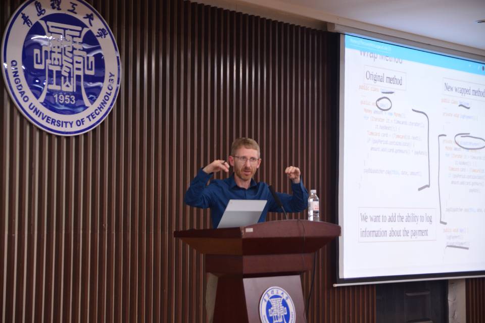 报告会上,David Janzen博士首先阐述了遗留代码的概念,并表示跟遗留代码打交道会是比较困难的,尤其是如果代码是由某位不知道名字的程序员用一种不熟悉的语言编写的话,软件工程师需要能够理解、更改和添加长时间编写的遗留软件作为基础对软件进行小部分创新和改造。David Janzen博士结合迈克尔·费奇的观点为同学们介绍了改造创新的方法。同时,他和同学们现场讨论了改变软件的原因,并介绍一些改变现有软件安全方法的最佳实践。David Janzen博士的声情并茂的为大家讲述专业知识,配合着实例为同学们耐心解答疑惑,现场气氛活跃,互动热烈。与会师生纷纷表示,报告内容高屋建瓴、内涵丰富,观点新颖,并给后续学习研究指明了路径,令人受益匪浅。