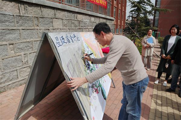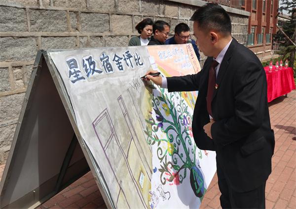 公寓管理中心主任王庆华在海报上签名