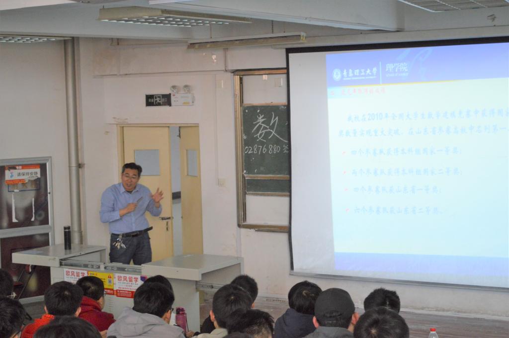 建模比赛不仅可以提高同学们面对复杂事物的想象力、洞察力和独立进行研究的能力,更可以培养团队合作精神以及勇于克服困难的精神。本次讲座加深了2018级学生对数模竞赛的认识,增强了对数学建模的兴趣。讲座过程中,学生们求知若渴的精神、发自内心的热情,以及范老师激情幽默的讲解,使得整场讲座气氛十分活跃。(撰稿:高艺轩;审核:曲良波)