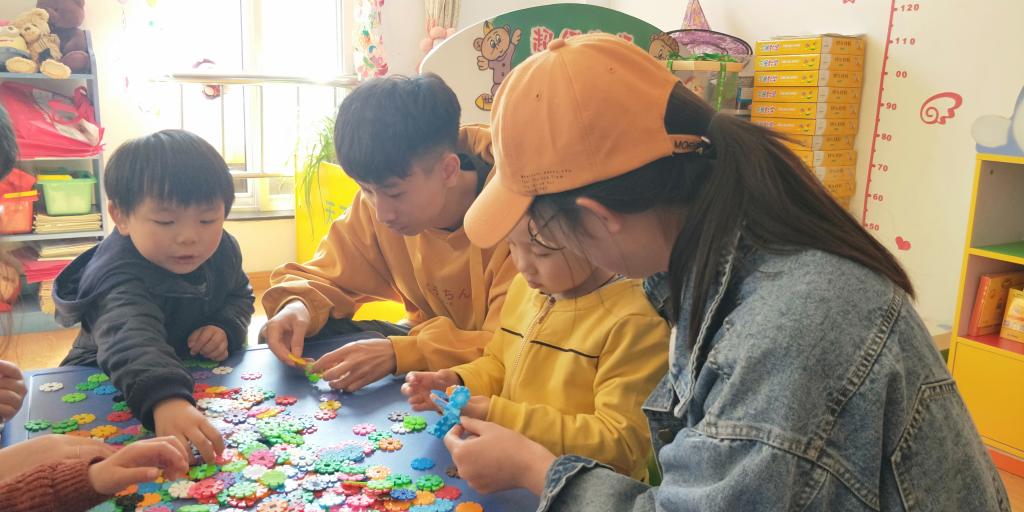 下午二时许,志愿者到达小百灵听力语言中心并开始了忙碌的工作。虽然志愿者和小朋友是第一次见面,但是很快他们就像相识很久的朋友那样畅聊起来。首先是喝水时间,孩子们在志愿者的陪同下有序的喝完了水并分完了水果。在课上,志愿者们与小朋友积极互动,一起玩着益智玩具,然后一起阅览了图书。最后,志愿者们出色地完成了教小朋友们“认图识色”的教学任务。