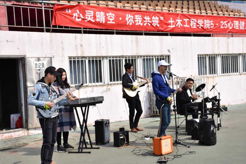 本次土木心理健康节为期两个多月,包含了“健康从心始”系列讲座、“生命哲学”系列讲座、“雪绒花”微爱行动、“筝情逐梦”放风筝大赛、心理情景剧大赛、青理朗读者等活动。开幕式上,郭兰成致辞,他强调心理健康和身体健康是人生的两大基石,大学生只有使自己保持积极的情绪、和谐的人际关系、良好的人格品质、坚强的意志和成熟的心理行为,才能为将来踏上社会,实现人生价值打下坚实的心理基础。他希望同学们在工作、生活、学习当中树立科学的心理认识,掌握正确的调节方法应对心理问题以及工作、学习、生活中的困难和压力。随后,土木173班王慧同学发言,号召新时代大学生要积极培养健康的心理品质,以饱满的精神风貌,积极向上的人生观念,为营造健康和谐的校园环境,为共建和谐美好社会贡献青春力量。她带领全体参与人员进行宣誓,大家将以青春为名,为梦护航,为达到心中的远方而风雨兼程。之后,土木工程学院教工组成的“彩砼乐队”带来了精彩的歌曲《奔跑》,将活动氛围推向了高潮。最后,张纪刚宣布心理健康节开幕,为土木工程学院心理健康节拉开了序幕。