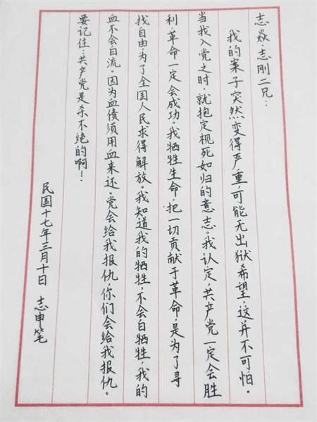 笔墨描绘真情,家书传递记忆。本次活动以红色家书为主线,通过誊写的方式重温革命历史,缅怀革命先烈,学生共誊写红色家书100余篇。一封红色家书,蕴藏饱满的爱国情怀;一封家书,彰显不屈的民族气节。在誊写现场,同学们怀着崇敬之情,认真的誊写吉鸿昌就义前给妻子胡红霞的遗书、方志敏临死以前的话、赵一曼就义前给儿子的遗书等。一段段红色家书背后的故事也跃然纸上,商学院学生徐宇璐说:“红色家书是我们团员青年的精神家园,一个个感人至深的故事,让我们深深懂得,今天美好幸福的生活是无数革命先烈用鲜血和生命换来的。我们要一心向党、不忘初心、继续前进!”