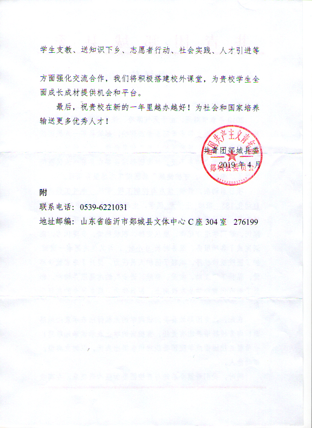 日前,共青团郯城县委给365完美寄来的表扬信,对信息与控制工程学院电气工程及其自动化183班王子龙同学寒假期间参与共青团郯城县委组织的志愿服务项目的优异表现提出表扬。