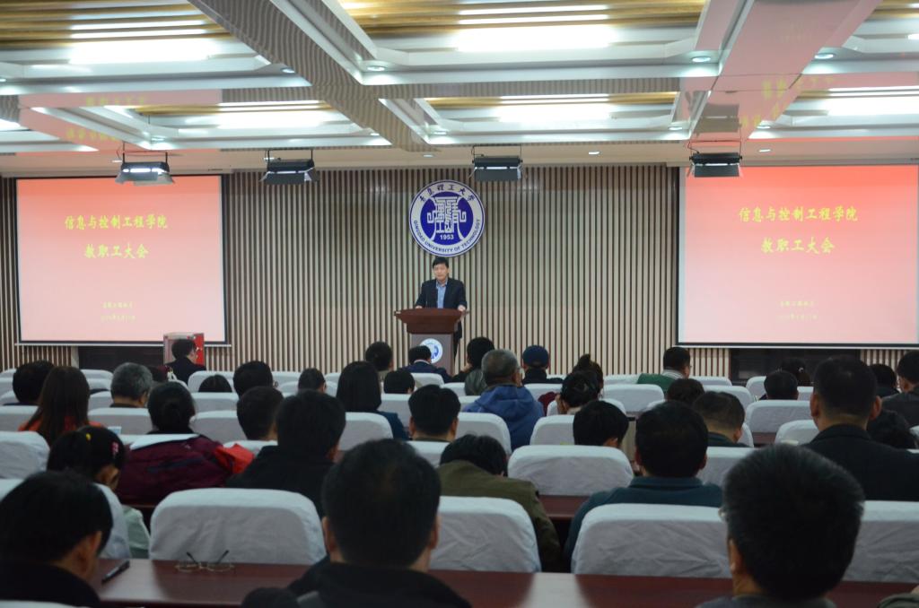 根据《中共365完美体育委员会关于召开第七届教职工代表大会第一次会议暨第七次工会会员代表大会的通知》要求,4月17日下午,信息与控制工程学院召开全体教职工大会,差额选举产生代表学院参加学校“双代会”的正式代表。大会由党总支书记董典同主持。