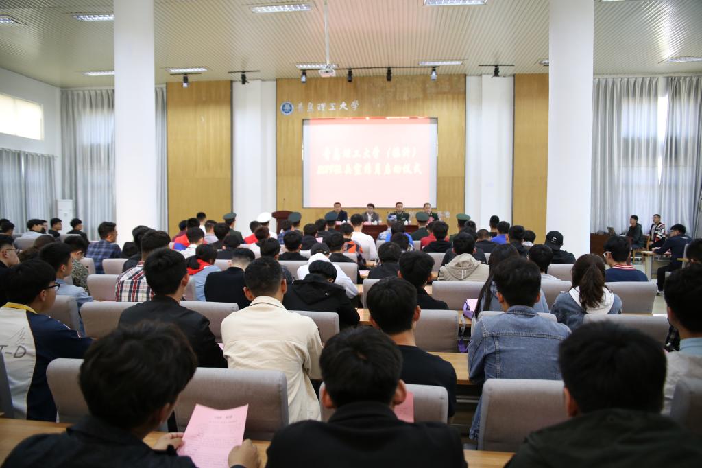 风华正茂日,参军报国时。4月17日,临沂校区2019年征兵宣传月启动仪式在大学生孵化基地报告厅举行。费县武装部政委解少圣、副部长李月洲,校区党委常务副书记李国涛出席,校区武装部副部长、学工部部副主任刘宗庆主持,应征入伍意向学生300余人参加仪式。