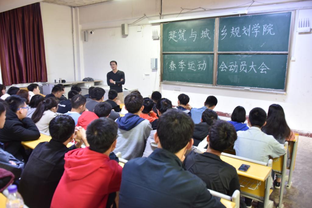 在校春季运动会来临之际,为充分调动运动员的积极性,保障运动会期间各项=工作有序开展,4月24日下午,建筑与城乡规划学院运动员动员大会在一号教学楼一阶顺利举行。该次动员大会由学工办主任,分团委书记王鹏飞主持,辅导员王明慧、全体运动员、部分学生骨干参加动员会。