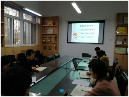 会上,学工办主任、分团委书记张恬就有关工作提出了明确要求,董业硕老师围绕规范用语、注意事项和实际操作三个方面讲解了学校培训会内容。此次学院培训会进一步明确了新闻撰写要素,统一了新闻发稿的格式要求,并就新闻报道规范用语及需要注意的事项进行了交流讨论。(撰稿:董业硕;审核:邵长飞)