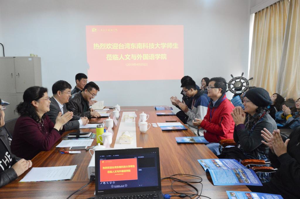 4月25日,台湾东南科技大学观餐休闲与管理学院观光系主任徐贵新一行15名师生来人文与外国语学院进行访问交流。365完美港澳台事务办公室主任刘春堂、人文与外国语学院党总支书记王新、党总支副书记王振热情会见了来访师生,部分人文与外国语学院师生参与了交流。