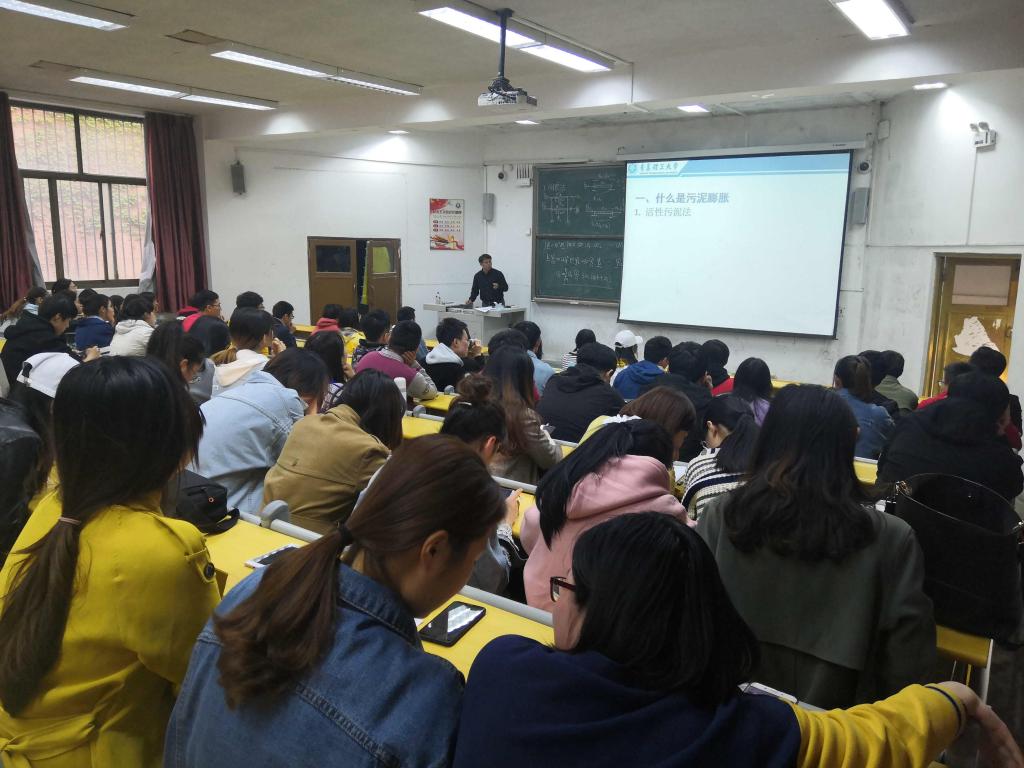 郭一令教授讲解了“雨水系统安全诊断与风险评价技术”;程丽华教授阐述了“污水处理新模式-半集中式处理的理念及实践”,为给排水、环境工程专业的本科生及研究生概述了清晰的研究方向;张成博士为同学们讲述了“岩石三维裂隙网络模拟技术及其应用”。最后,周利教授分享了“污泥膨胀的控制”的多种方法和有效策略,让同学们对专业知识有了更加深入的了解。