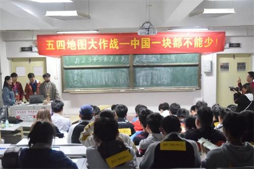 为迎接百年五四的到来,弘扬“爱国、进步、民主、和谐”五四精神,4月26日晚,信息与控制工程学院在长江路校区二号教学楼举办了“百年五四—寻找失落的地图”活动,本活动以1919年巴黎和会外交失败为背景,学院学生组成六支队伍模拟了一场在“5月4日”的大游行。