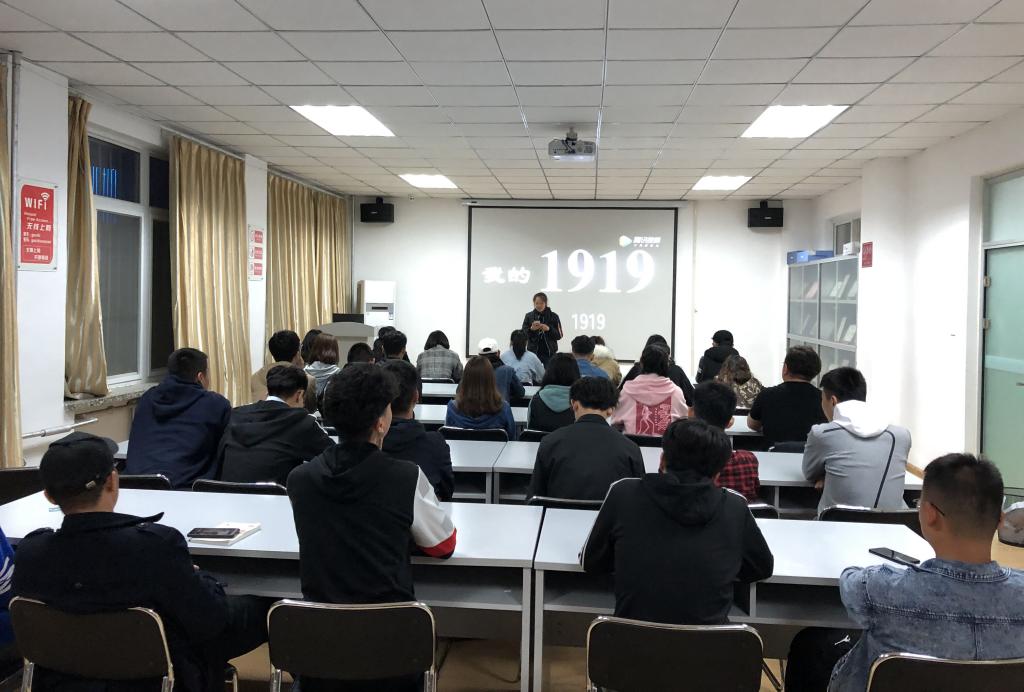 为纪念五四运动100周年,弘扬爱国、进步、民主、科学的“五四”精神,激发团员青年的爱国热情,4月29日晚,高等职业学院在长江路校区2号实验楼组织广大团员青年共同观看爱国教育影片《我的1919》,学院分团委书记宋晓峰、全体团支书、优秀团员代表等50余人参加。